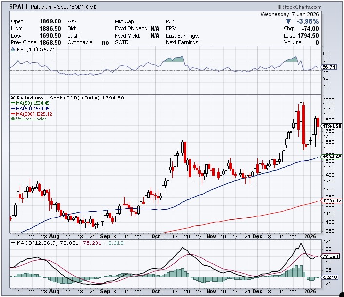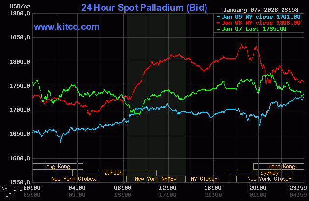 It was the same for palladium, except its engineered low tick was set around 9:20 a.m. in COMEX trading — and it then wandered quietly higher until ‘da boyz’ reappeared about ten minutes before trading ended at 5:00 p.m. EST. Palladium was closed at $1,744 spot…down 62 dollars on the day — and 57 bucks off its Kitco-recorded low tick.