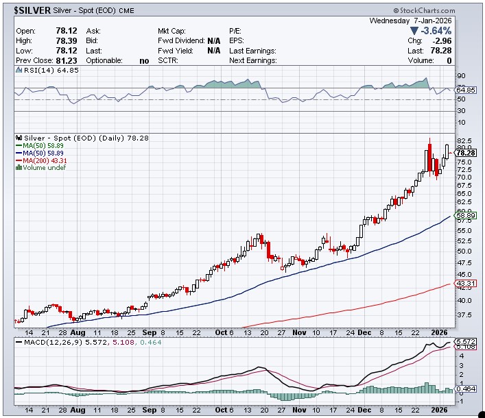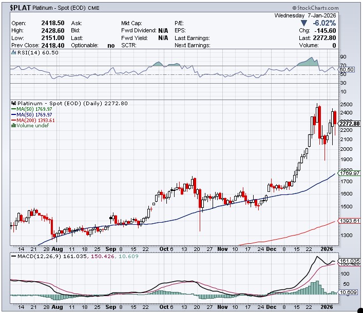 All four precious metals are a very long way above any moving averages that matter — and it’s a given that ‘da boyz’ don’t have enough fire power to get near any of them…although one must never underestimate their treachery.