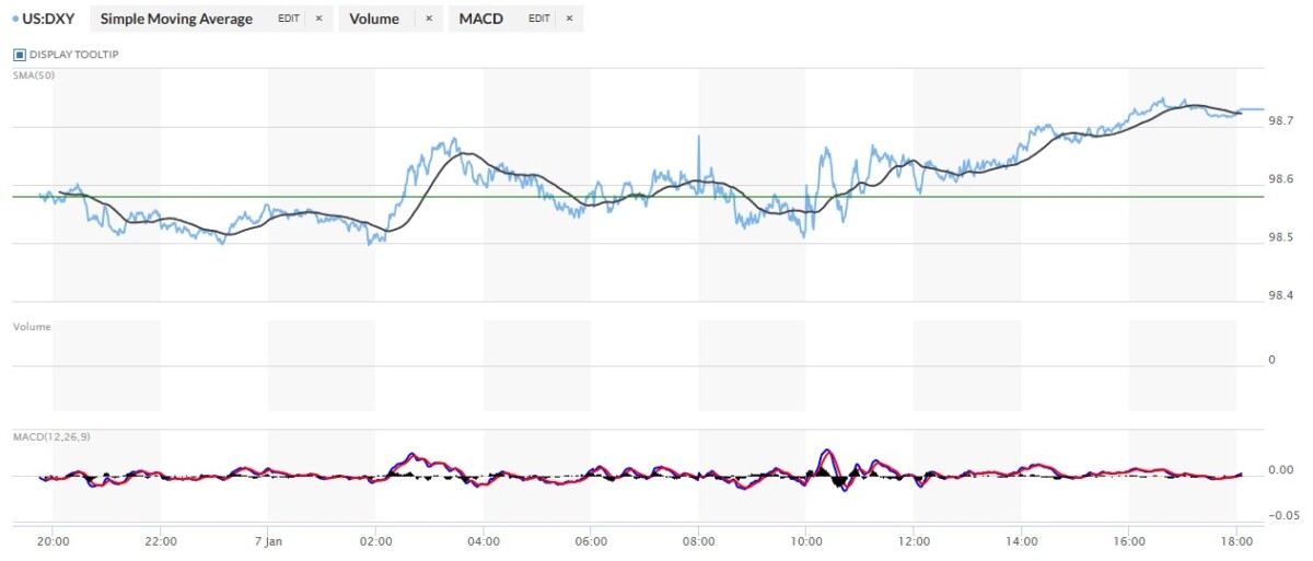 The dollar index finished the Wednesday trading session in New York at 98.68…up 10 basis points from its close on Tuesday — and 5 basis points below its indicated close on the DXY chart below.