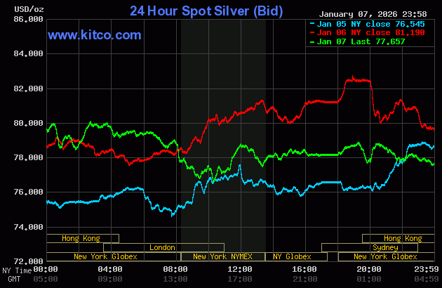 Silver was closed in New York on Wednesday afternoon at $78.139 spot…down $3.05 on the day — and $1.83 off its Kitco-recorded low tick. Net volume was monstrous once again at a bit under 133,00 contracts — and there were about 21,500 contracts worth of roll-over/switch volume in this precious metal.